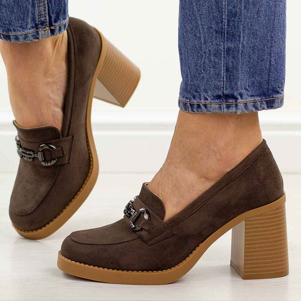 Brązowe mokasyny damskie na słupku M.Daszyński 2461-6