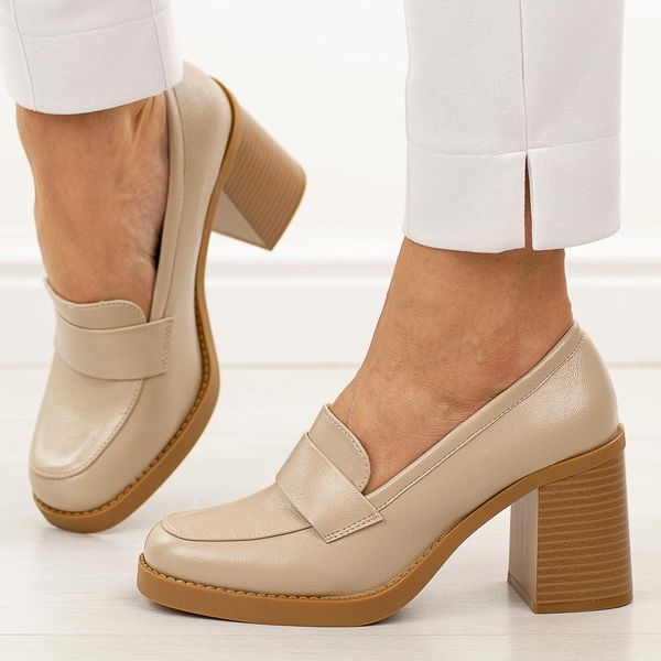 Beżowe mokasyny damskie na słupku Jezzi 2461-5