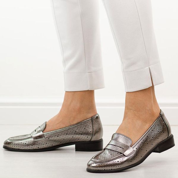 C.Srebrne ażurowe mokasyny damskie Vinceza 58624