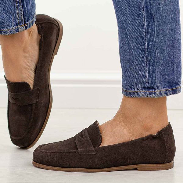 Brązowe zamszowe mokasyny damskie Vinceza 18122