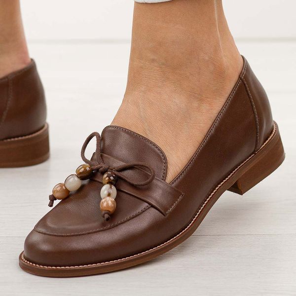 J.brązowe skórzane Polskie mokasyny damskie Deoni D042