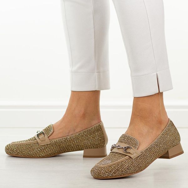 Stylowe brązowe półbuty damskie stylizowane na mokasyny M.Daszyńskito doskonały wybór na wiosnę, lato, jesień oraz różnego rodzaju okazje, łączący wygodę z eleganckim wykończeniem. Cholewka została wykonana z materiału przypominającego grube płótno, co nadaje obuwiu oryginalnego charakteru i modnego wyglądu. Złota klamerka stanowi subtelną ozdobę, podkreślając szykowny styl modelu. Wsuwany fason zapewnia szybkie i wygodne zakładanie, a […]