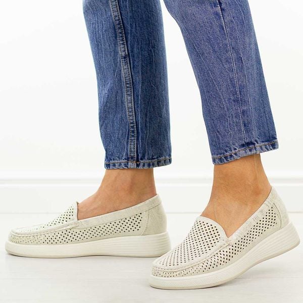 Beżowe ażurowe mokasyny damskie Sergio Leone Mk097H