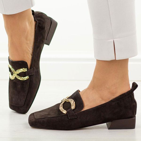 Czekoladowe skórzane mokasyny damskie DiA 3115