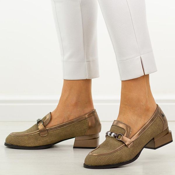 Eleganckie brązowo-złote półbuty damskie stylizowane na mokasyny Jezzito wyjątkowa propozycja na wiosnę, lato, jesień oraz różnego rodzaju okazje. Cholewka została wykonana z materiału przypominającego grube płótno, co nadaje modelowi modnego, a jednocześnie lekkiego charakteru. Ozdobna złota klamerka podkreśla szykowny styl i sprawia, że obuwie doskonale wpisuje się w aktualne trendy. Wsuwany fason gwarantuje wygodę użytkowania, a […]