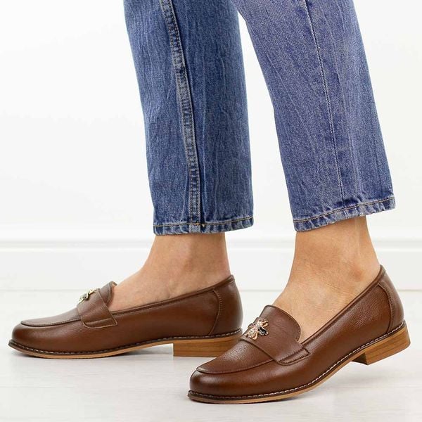 Brązowe skórzane mokasyny damskie Potocki 19382