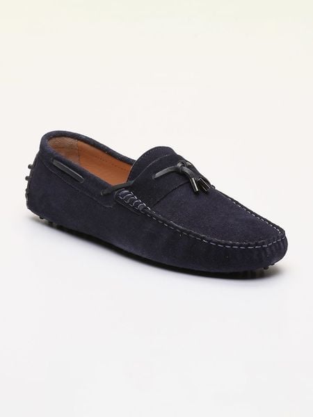 Męskie buty mokasyny skórzane z rzemykiem i podeszwą driver - granatowe V4 - Rozmiar: 42