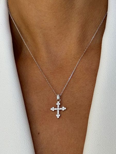 – materiał: srebro Sterling próby 925- powłoka: rodowanie- zapięcie: karabińczyk- typ łańcuszka: ankier- rodzaj kamienia: cyrkonia- kolor kamienia: bezbarwny- regulacja długości: tak- element ozdobny: krzyżWskazówka: Zdjęcie produktu w powiększeniu.