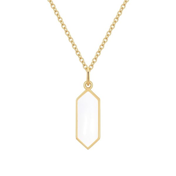 INFORMACJE OGÓLNE: Rodzaj łańcuszka: Łańcuszek ankier Zapięcie: zapięcie sprężynowe Grupa docelowa: Kobiety MATERIAŁ: Materiał podstawowy: Srebro wysokiej próby Kolor materiału podstawowego: Żółte złoto Delikatność: 925/- Emalia: Biały Powłoka: Pozłacany 14-karatowym żółtym złotem Wykończenie powierzchni: Polerowana na wysoki połysk WYMIARY: Wysokość wisiorka w cm, w przybliżeniu: 21,8 Szerokość zawieszki w mm, w przybliżeniu: 6,7 Szerokość łańcuszka […]