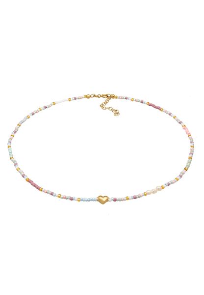 Elli Damski choker ze szklanych koralików Heart Trend z pozłacanego srebra próby 925 Sterling Silver Naszyjniki 1 ct