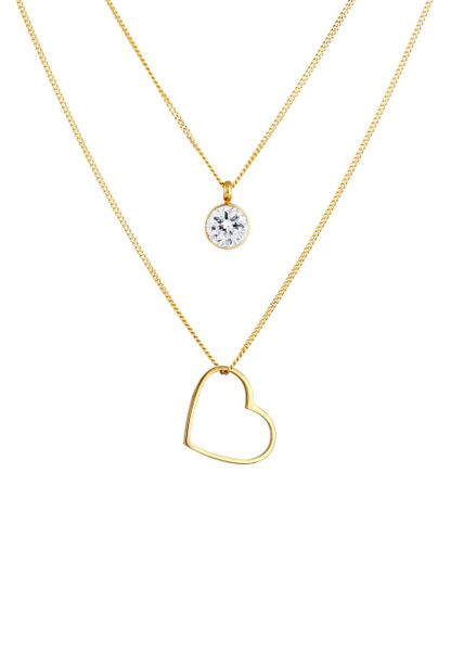 Elli Damski naszyjnik warstwowy z zawieszką w kształcie serca i kryształami, srebro 925 Naszyjniki 1 ct
