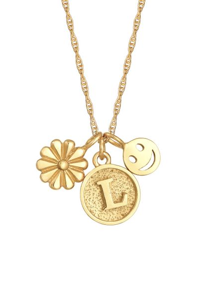 Elli Damski wisiorek Kwiatowy Uśmiechnięty Dysk Litera L w srebrze próby 925 Sterling Silver Naszyjniki 1 ct