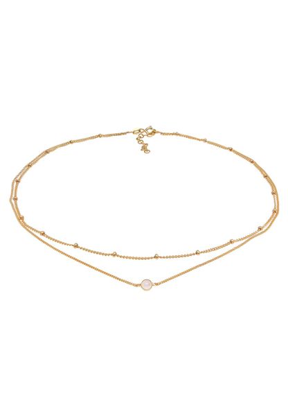 Elli Damski naszyjnik Choker warstwowy z kulkowym łańcuszkiem z kwarcem różowym pozłacane srebro 925 Sterling Silver Naszyjniki 1 ct