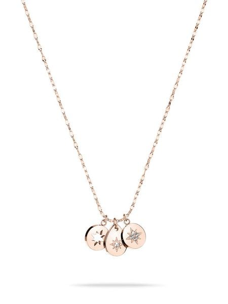 – materiał: stal szlachetna- powłoka: IP-roségold- zapięcie: karabińczyk- typ łańcuszka: ankier- rodzaj kamienia: szkło – kolor kamienia: bezbarwny- kształt zawieszki: okrągła- regulacja długości: takWskazówka: Zdjęcie produktu w powiększeniu.