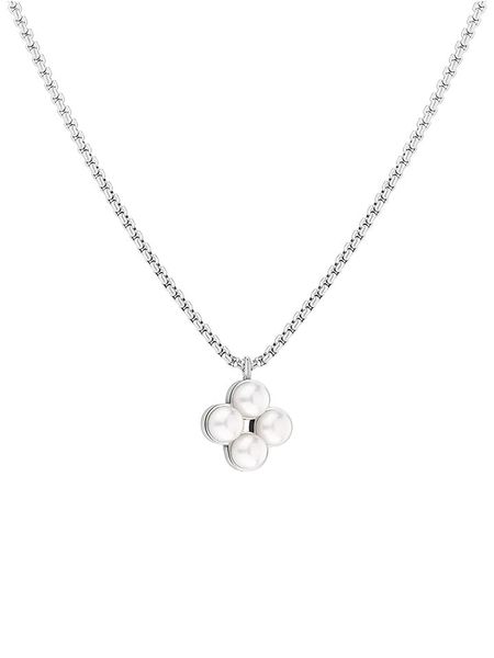– materiał: stal szlachetna- powłoka: IP-silver- typ łańcuszka: kulka- zapięcie: karabińczyk- rodzaj perły: syntetyczna perła ozdobna- regulacja długości: takWskazówka: Zdjęcie produktu w powiększeniu.