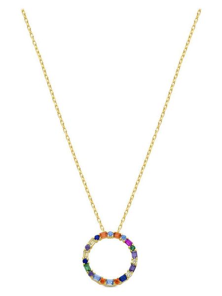 – materiał: srebro Sterling próby 925- powłoka: w kolorze złota- typ łańcuszka: ankier- zapięcie: federing- rodzaj kamienia: cyrkonia- kolor kamienia: wielokolorowy- element ozdobny: koło- regulacja długości: takWskazówka: Zdjęcie produktu w powiększeniu.