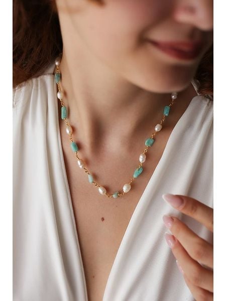 Pierres delicates Pozłacany naszyjnik z amazonitami – dł. 43 cm rozmiar: onesize