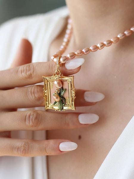 – materiał 1: hodowlane perły słodkowodne- materiał 2: mosiądz- powłoka: złoto- zapięcie: karabińczyk- kolor pereł: jasnoróżowy- kształt zawieszki: medalion- regulacja długości: takWskazówka: Zdjęcie produktu w powiększeniu.
