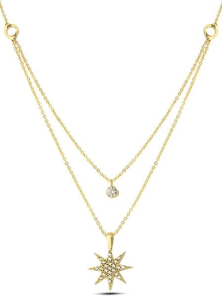 – materiał: mosiądz- powłoka: 14K złoto- typ łańcuszka: ankier- zapięcie: karabińczyk- rodzaj kamienia: cyrkonia- kolor kamienia: bezbarwny- kształt zawieszki: gwiazda- regulacja długości: takWskazówka: Zdjęcie produktu w powiększeniu.