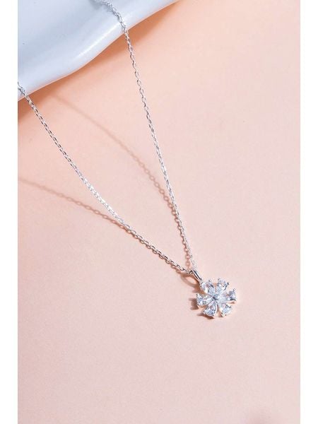 – materiał: srebro Sterling próby 925- powłoka: rodowanie- zapięcie: federing- typ łańcuszka: ankier- rodzaj kamienia: cyrkonia- kolor kamienia: bezbarwny- kształt zawieszki: kwiat- regulacja długości: takWskazówka: Zdjęcie produktu w powiększeniu.