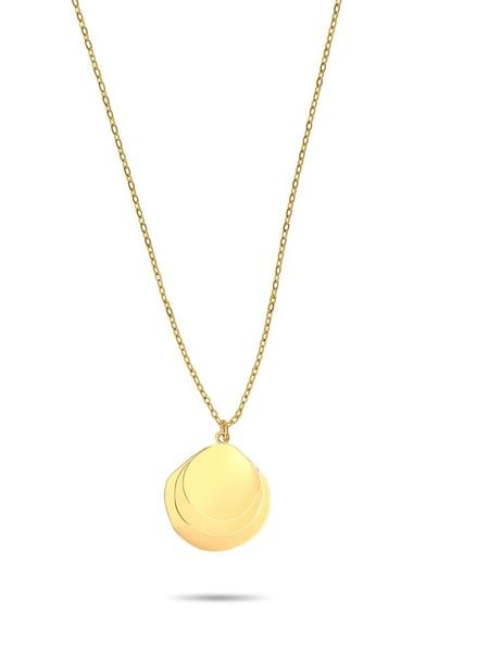 – materiał: stal szlachetna- powłoka: w kolorze złota- zapięcie: karabińczyk- typ łańcuszka: ankier- kształt zawieszki: okrągła- regulacja długości: takWskazówka: Zdjęcie produktu w powiększeniu.