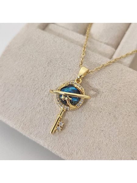 – materiał: stal szlachetna- powłoka: złoto- typ łańcuszka: ankier- zapięcie: karabińczyk- rodzaj kamienia: cyrkonia- kolor kamienia: bezbarwny- kształt zawieszki: klucz- regulacja długości: takWskazówka: Zdjęcie produktu w powiększeniu.