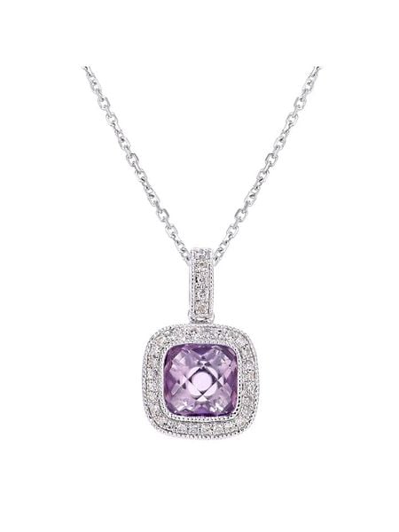 – materiał: 9-karatowe białe złoto próby 375- typ łańcuszka: ankier- kamień 1: diament- kamień 2: ametyst- kolor kamienia: bezbarwny (H-I), fioletowy- czystość: I2-I3- liczba karatów: 0,1- kształt zawieszki: kanciastaWskazówka: Zdjęcie produktu w powiększeniu.