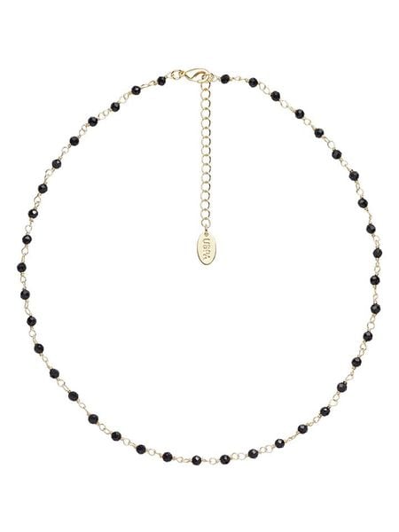 – materiał: metal- powłoka: złoto- zapięcie: karabińczyk- rodzaj kamienia: agat- kolor kamienia: czarny- regulacja długości: takWskazówka: Zdjęcie produktu w powiększeniu.