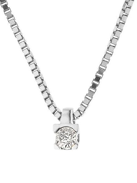 – materiał: 9-karatowe białe złoto próby 375- typ łańcuszka: kostka wenecka- zapięcie: karabińczyk- rodzaj kamienia: diament- kolor kamienia: bezbarwny (H)- czystość: SI- ilość karatów: 0,01- certyfikat i karta gwarancyjna: takWskazówka: Zdjęcie produktu w powiększeniu.