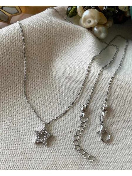 – materiał: mosiądz- powłoka: 14K białe złoto- typ łańcuszka: ankier- zapięcie: karabińczyk- rodzaj kamienia: cyrkonia- kolor kamienia: bezbarwny- kształt zawieszki: gwiazda- regulacja długości: takWskazówka: Zdjęcie produktu w powiększeniu.