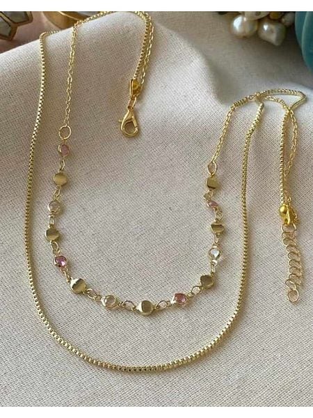 – materiał: mosiądz- powłoka: 14K złoto- typ łańcuszka: ankier- zapięcie: karabińczyk- rodzaj kamienia: kryształ- kolor kamienia: bezbarwny, jasnoróżowy- regulacja długości: takWskazówka: Zdjęcie produktu w powiększeniu.