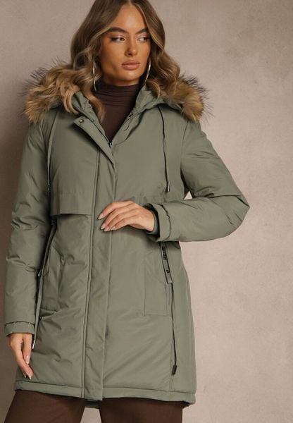 Zielona Klasyczna Kurtka Parka z Kapturem z Futrem Nalisava