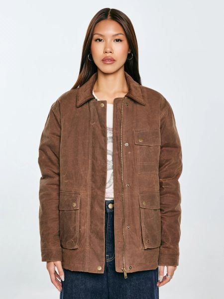 Kurtka damska parka z efektem woskowania brązowa Tormia 803