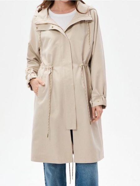 Długa parka z kapturem – kremowy