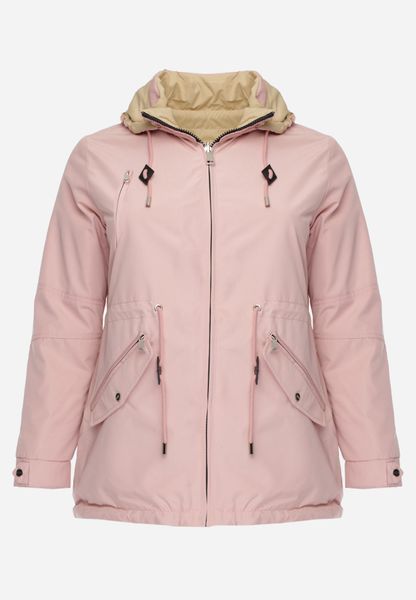 Różowo-Beżowa Przejściowa Kurtka Dwustronna o Kroju Parki z Pikowaniem Wewnątrz Zidelle