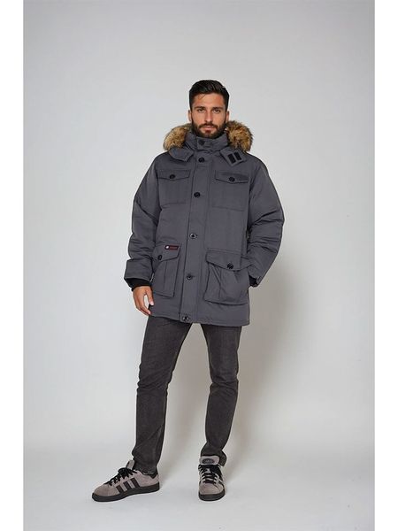 Długa męska kurtka parka ze strukturalnej tkaniny – szara V2 - Rozmiar: M