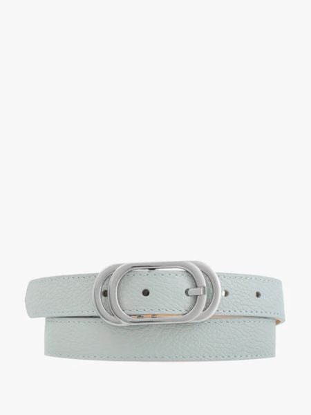 Błękitny pasek damski ze srebrną klamrą
