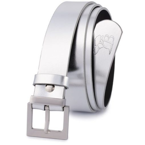 Pasek skórzany BELTIMORE r.85-100 cm D70 srebrny