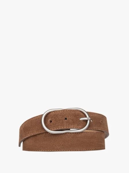 Rudy welurowy pasek damski ze srebrną klamrą