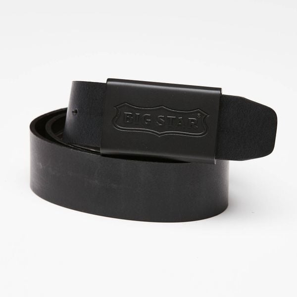 Pasek męski Big Star, naturalna skóra licowa w czarnym kolorze z prostą metalową klamrą z tłoczonym logo oraz klasyczną szerokością do codziennego uż