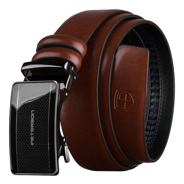 Brązowy pasek męski z automatyczną klamrą wykonany ze skóry naturalnej – Peterson