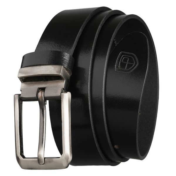 Elegancki pasek męski ze skóry naturalnej w czarnym kolorze ze srebrną, klasyczną klamrą – Peterson