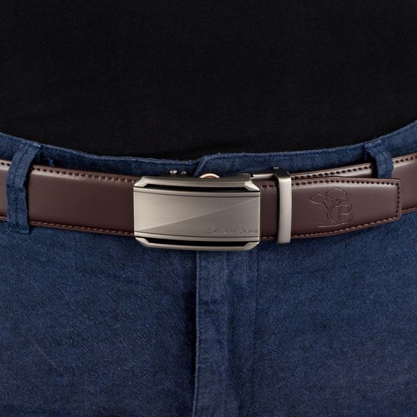 Pasek męski skórzany klamra automatyczna ciemno brązowy Beltimore A51 : Kolory – brązowy, beżowy, Rozmiar pasków – r.125-140 cm