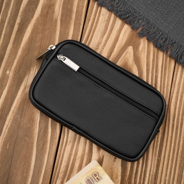 Męska skórzana saszetka na pasek do ręki czarna ABR-53