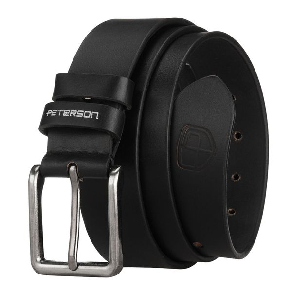 Pasek męski ze skóry naturalnej w czarnym kolorze z tradycyjną klamrą - Peterson
