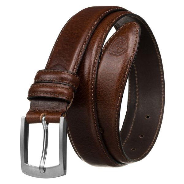 Skórzany, brązowy pasek męski z tradycyjną klamrą – Peterson