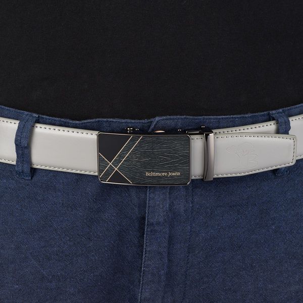 Pasek męski skórzany klamra automatyczna jasno szary Beltimore A46 : Kolory – szary, srebrny, Rozmiar pasków – r.130-145 cm