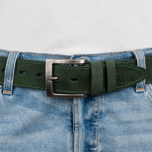 Pasek męski skórzany zamszowy skóra naturalna zielony Beltimore W49 : Kolory – zielony, Rozmiar pasków – r.85-100 cm
