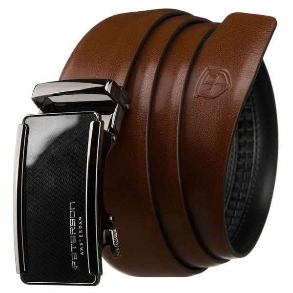 Klasyczny pasek męski w brązowym kolorze z automatyczną, srebrną klamrą – Peterson