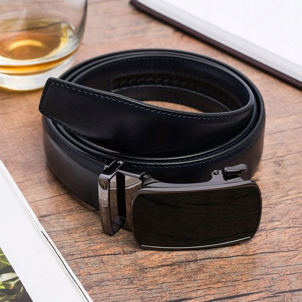 Pasek męski skórzany automat 3,5 szeroki duża metalowa klamra Alessandro AP19 : Kolory – granatowy, Rozmiar pasków – r.115-130 cm